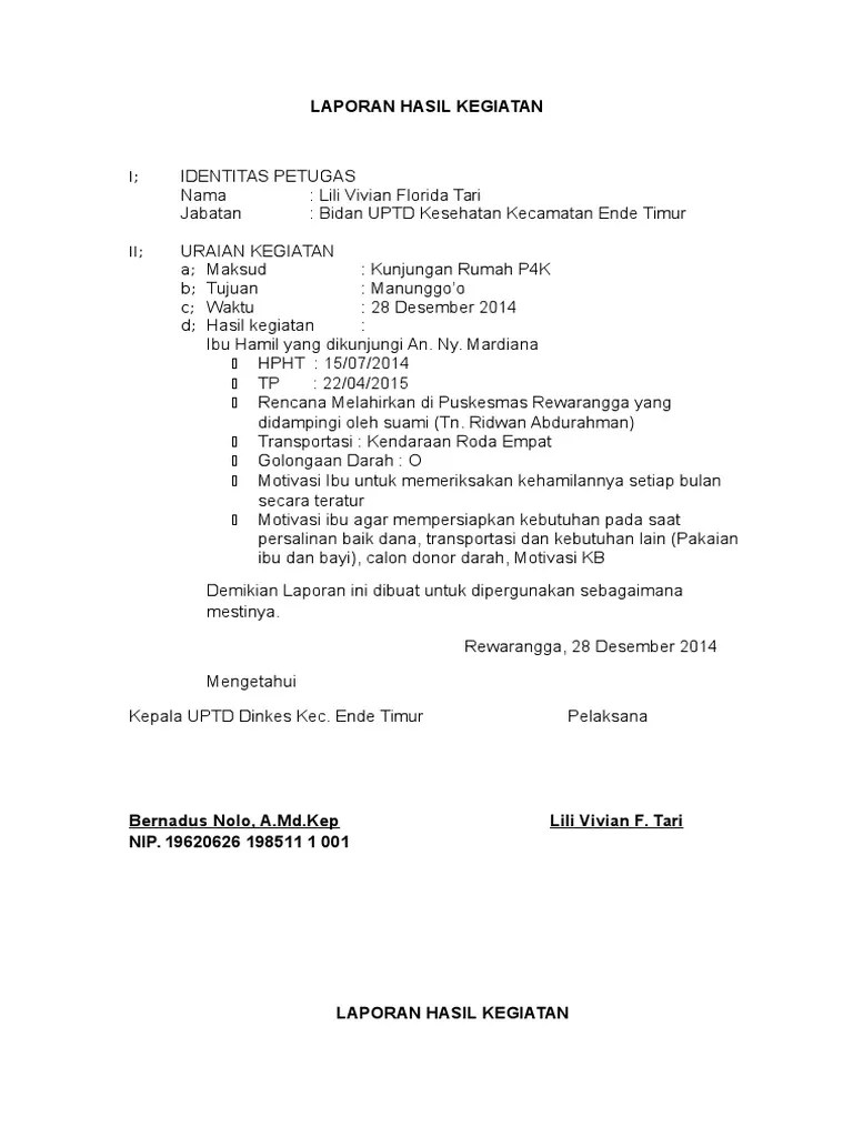 Contoh Laporan Hasil Kegiatan Puskesmas - Contoh Surat Laporan Kegiatan Contoh Surat / Komunikasi petugas kesehatan tentang hasil suatu kegiatan yang telah.